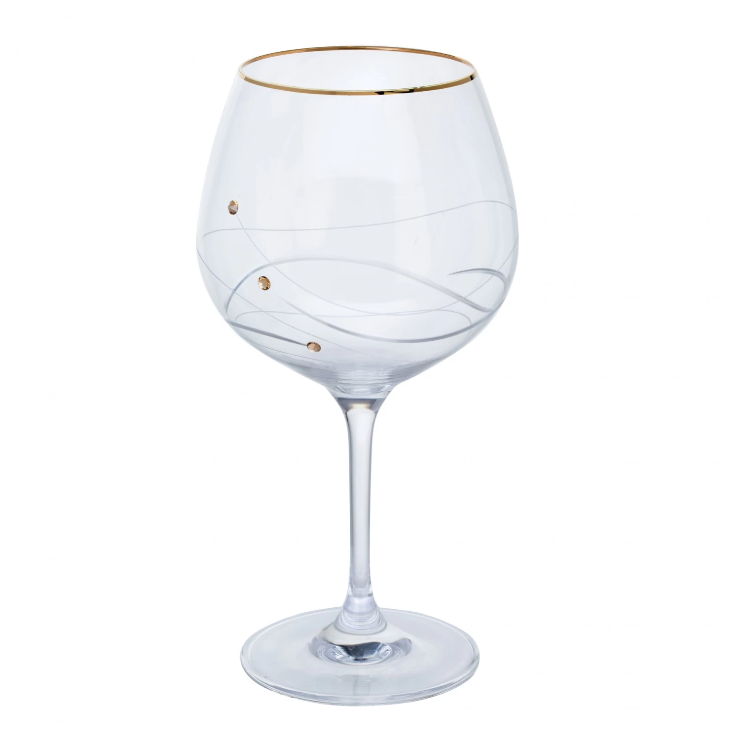 Enjoy the latest way to serve a good Gin and Tonic with this Spanish style Copa gin glass embellished with Crystals from Swarovski ®. The generous round bowl of this gin glass allows plenty of room for ice and a colourful citrus garnish. The tall stem keeps your hand from warming the cool contents to keep it always refreshing. Supplied in a smart gift box this glass makes a great gift for gin fans with style.